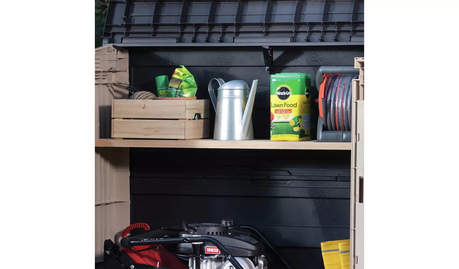 • 880L capacity for garden tools, accessories, or up to two 120L wheelie bins